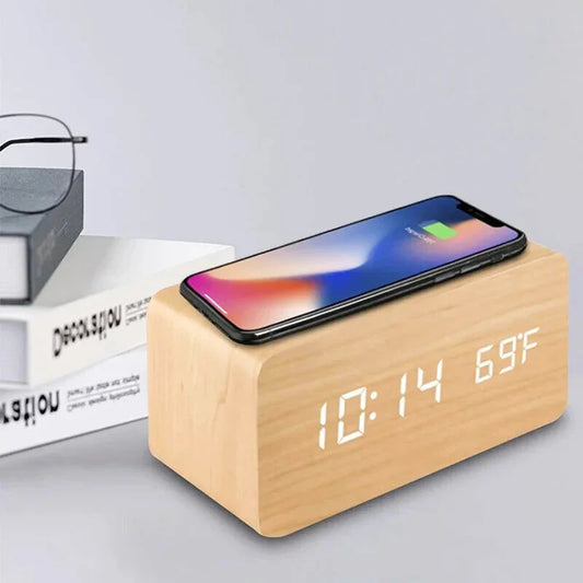 Réveil en Bois Chargeur sans fil affichage LED - Essentis