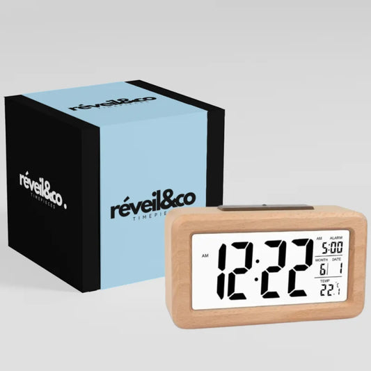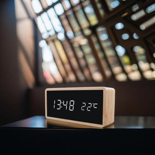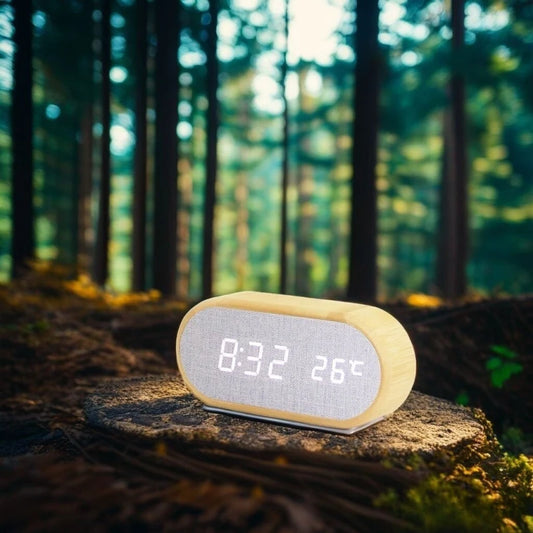 Réveil en Bois à écran digital LED multifonctions - Chênova