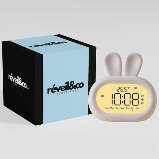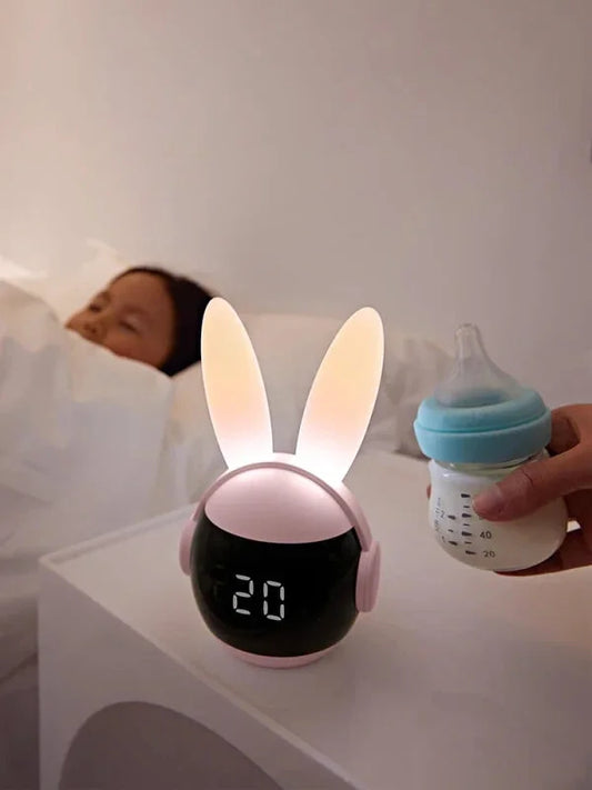 Réveil lapin aux grandes oreilles Veilleuse écran LED multifonctions - Clapino