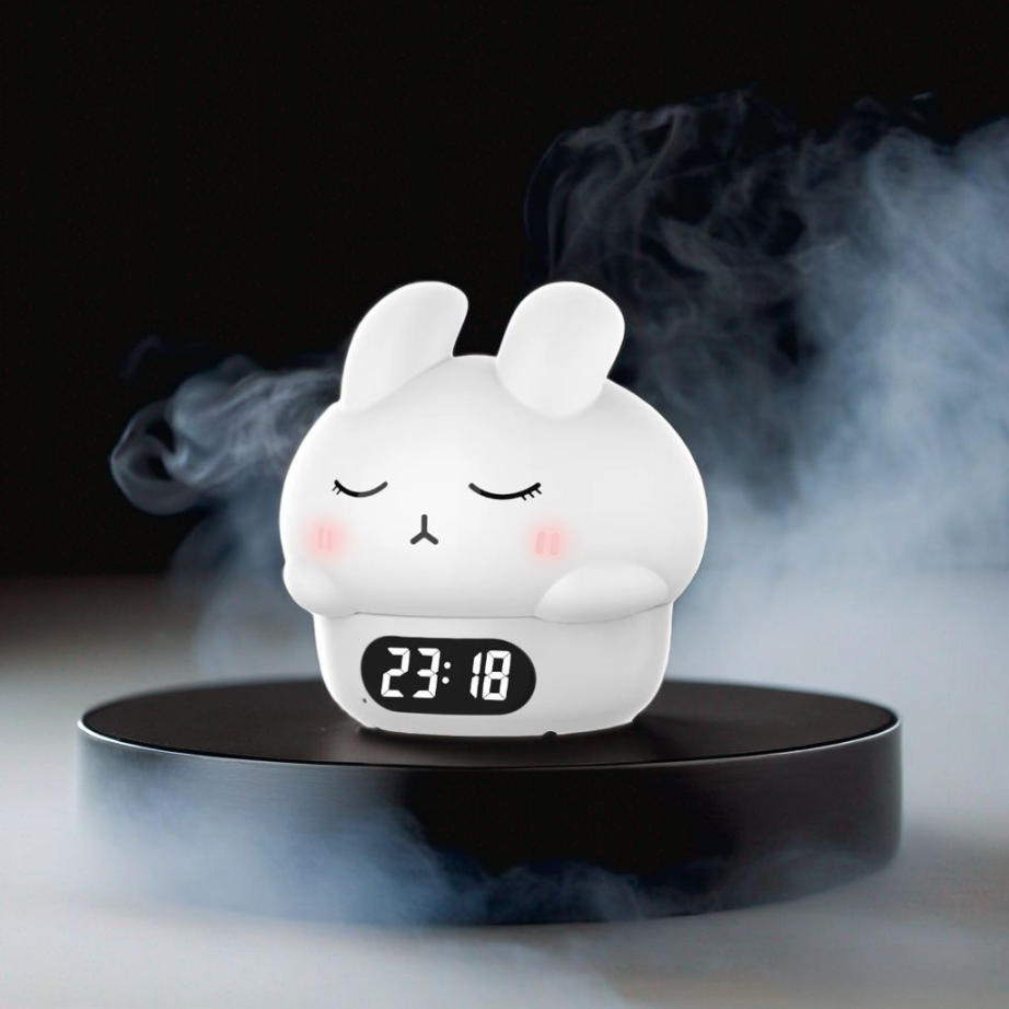 Apportez douceur et couleurs à vos nuits avec Bunnyzen, le réveil à tête de lapin molle qui fait également veilleuse.